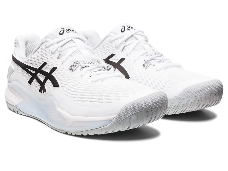 The GEL-RESOLUTION® 9 tennis shoe creates advanced stability and cushioning for players who like to control the game from the baseline. ​​DYNAWALL™ technology in the midsole now extends into the heel for added stability during lateral movements. It's a functional feature that's effective when you're running covering both sides of the baseline.​